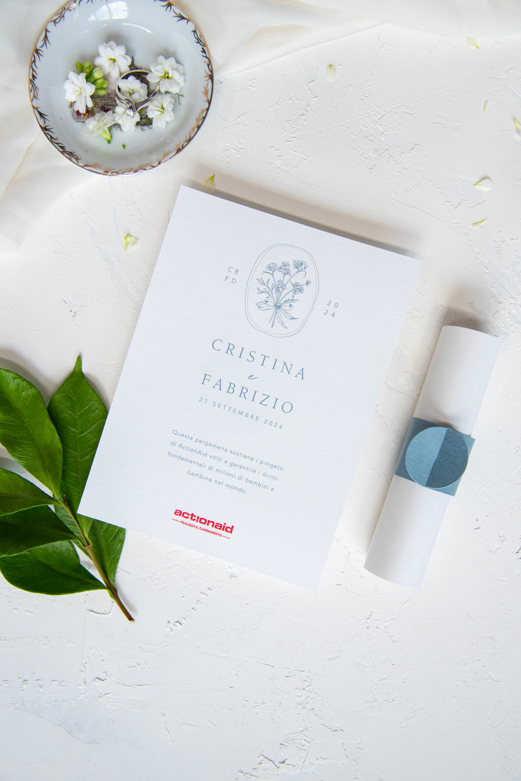 Per bomboniere, pergamene e partecipazioni sono previsti 10 euro a copertura delle spese di spedizione in tutta Italia e 30 euro nel resto dell'UE.
